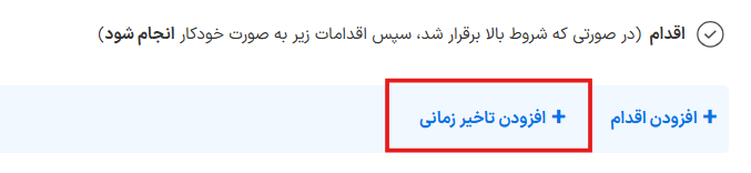 گاهی نمی خواهید اقدامی که تعریف کردید بلافاصله اجرا شود. در این حالت می توانید قبل از تعریف اقدام، گزینه ی افزودن تاخیر زمانی را انتخاب کنید.