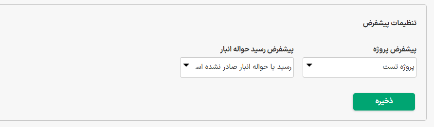 در صورتی که در حسابفا پروژه های مختلفی تعریف کرده اید در قسمت تنظیمات پیشفرض، می توانید پروژه ی مدنظر خود را انتخاب کنید (با انتخاب پروژه، فاکتور/پیشفاکتور های تولید شده پیشفرض در همان پروژه قرار می گیرند). در غیر این صورت این قسمت بدون مقدار خواهد بود.