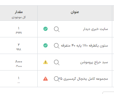 در صورتی که علامت اخطار زرد رنگ را مشاهده کردید یعنی به این تعداد محصول وارد شده، در انبار موجود نیست.