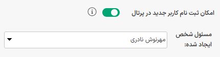 در این بخش مشخص میکنید که شخصهای جدیدی که از طریق پرتال ساخته میشوند، تحت مسئولیت کدام کاربر سیستم قرار بگیرند.