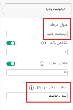 در ویرایش هر مرحله، دو عنوان قابل تعریف است: