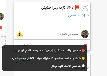- وقتی X درصد تا زمان راکد یا فاسد شدن باقی مانده باشد، کارت دایره زرد میگیرد (مرحله هشدار)